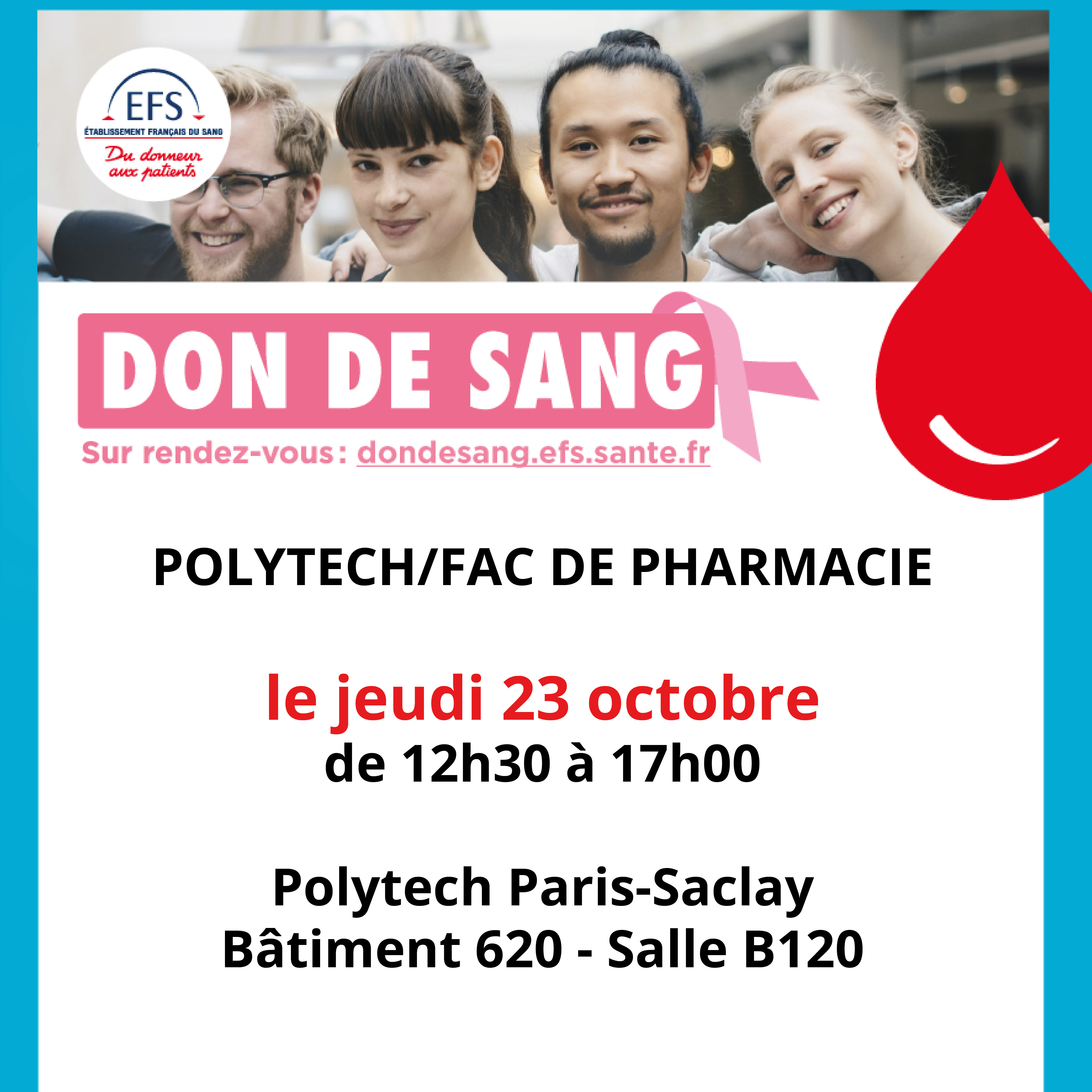 Polytech Paris-Saclay a le plaisir d’accueillir la prochaine collecte de sang dans ses locaux.