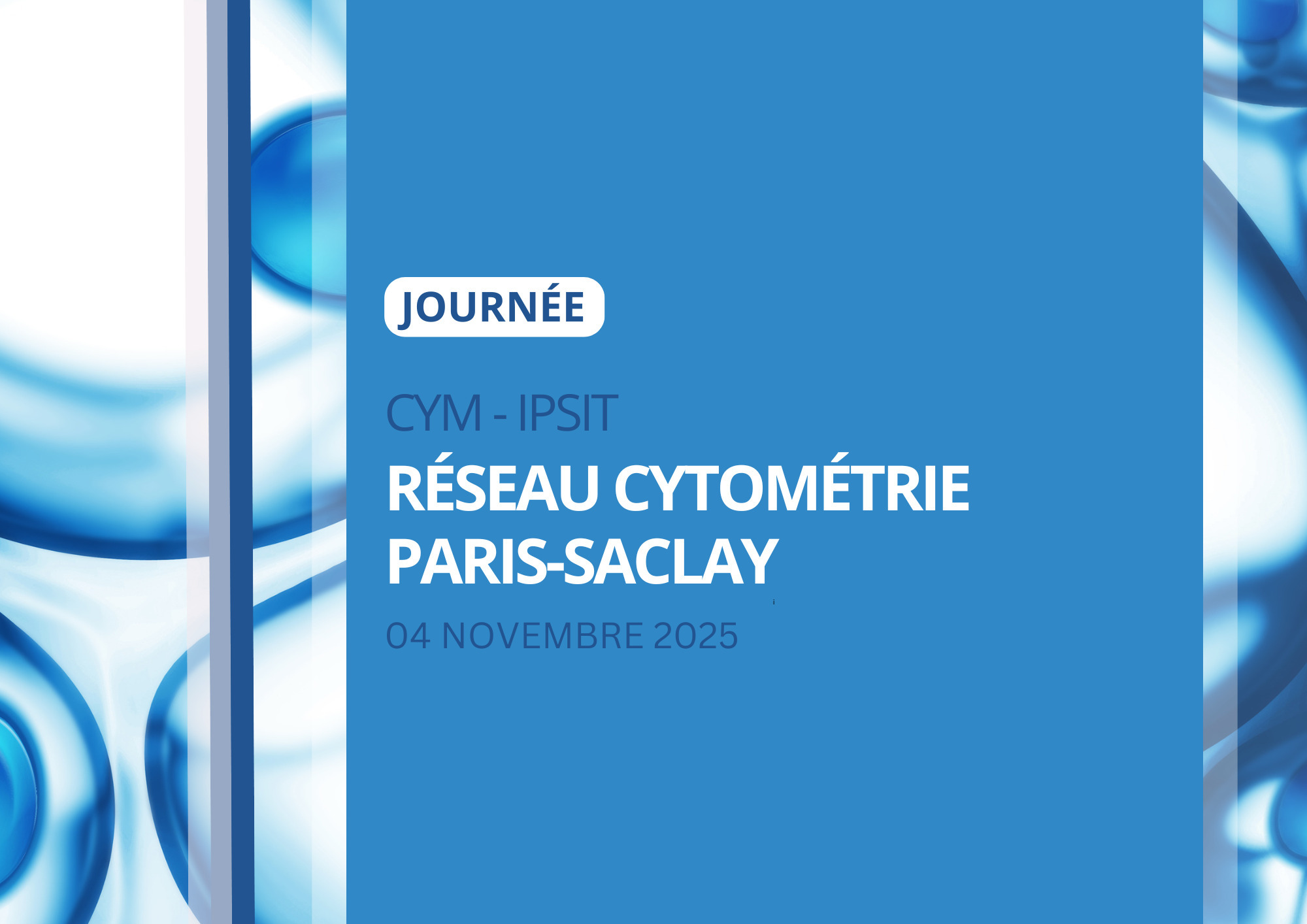 La 3e journée du réseau cytométrie de Paris-Saclay se déroulera le mardi 04 novembre 2025, de 9h à 17h, dans l'amphi Magat, du bâtiment 349 à Orsay.